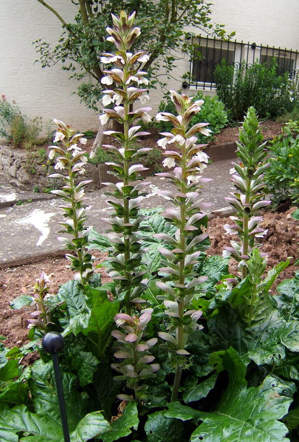 Blütezeit: Acanthus mollis blüht im Spätfrühling bis zum Sommer. Die Blütenstände bleiben oft bis in den Herbst hinein dekorativ.
