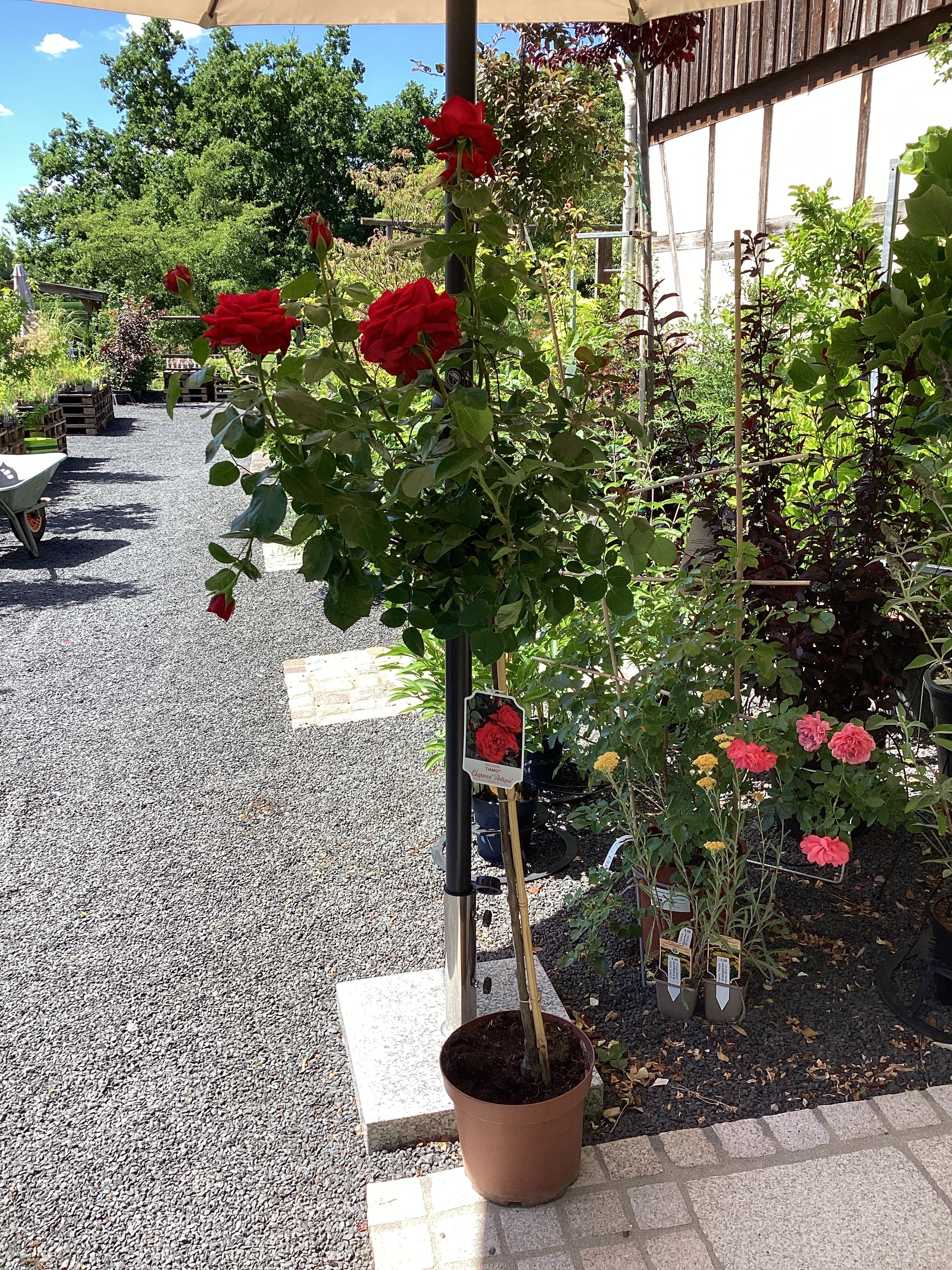 Diese Hochstammform ist eine echte Empfehlung für alle, die auf wenig Fläche viel Wirkung wollen. Knirps® wächst kompakt, blüht ausdauernd und lässt sich wunderbar mit niedrigem Lavendel oder Gräsern kombinieren – ob im Kübel auf der Terrasse oder im Beet am Sitzplatz. Ihre Standfestigkeit und Pflegeleichtigkeit machen sie auch für Gartenneulinge ideal.
