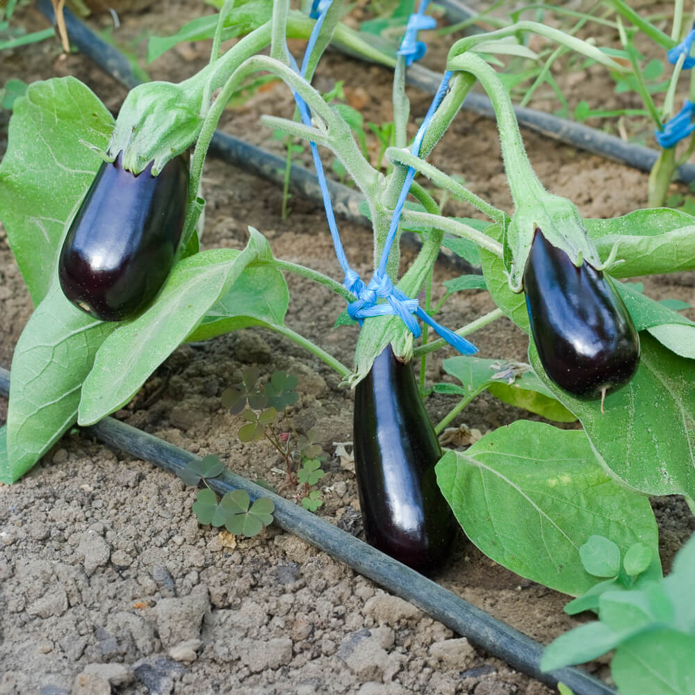 Die sogenannte Eierfrucht begeistert schon in der Wachstumsphase durch ihre kräftigen Blätter, die tiefviolette Farbe und ihre charakteristische Keulenform. Die Aubergine mag es warm und trocken und kann deshalb gut ab Mai im Freiland gepflanzt werden.