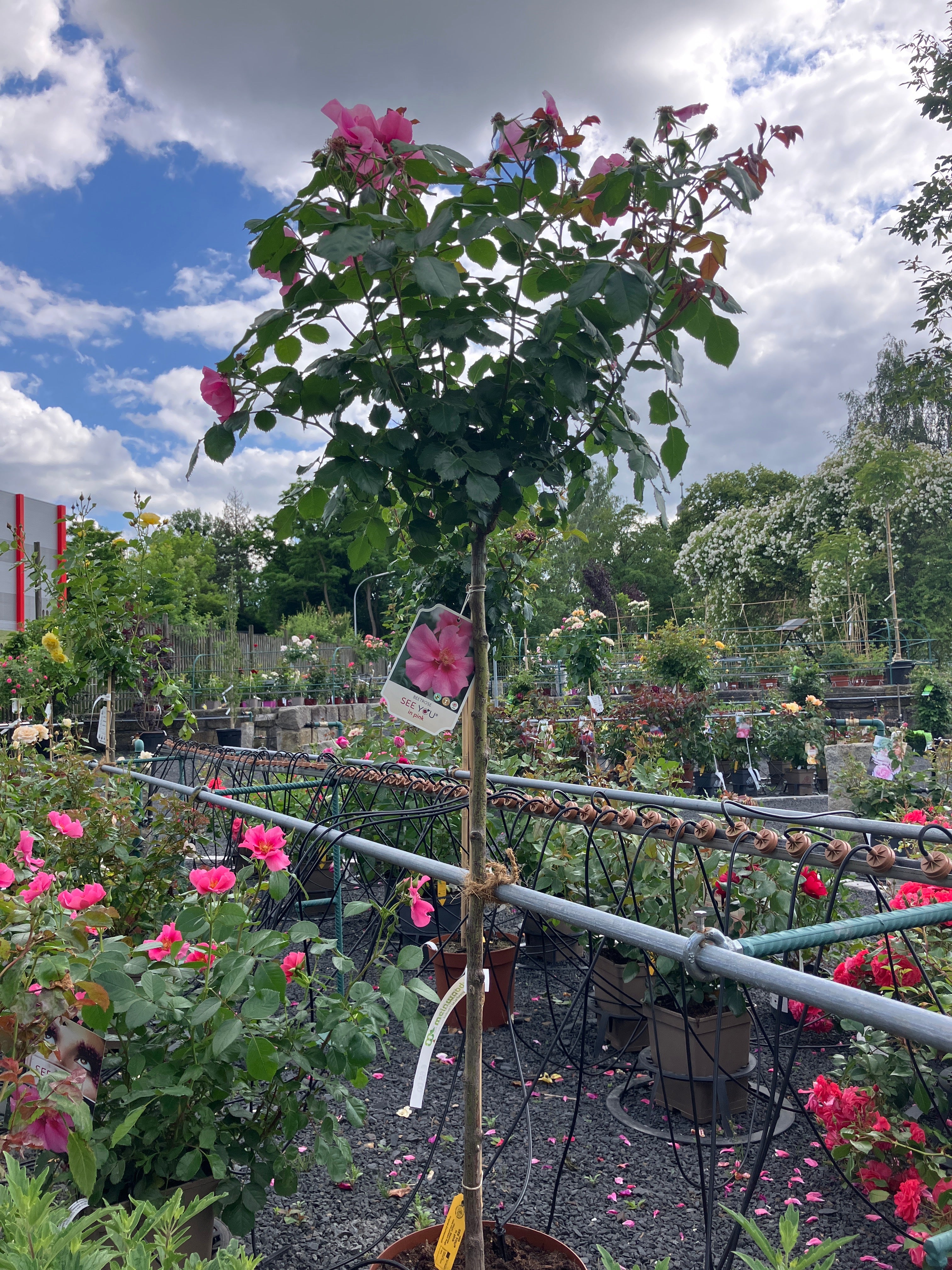 Die „Persica-Hybriden“ sind Rosen, die von der Wildart Rosa persica abstammen und sich durch ein dunkles Auge in der Mitte der Blüte auszeichnen. Obwohl sie von Rosenzüchtern und -liebhabern wegen ihres einzigartigen Aussehens geschätzt werden, sind sie immer noch ein Geheimtipp. Diese Gruppe, die mittlerweile vier Sorten umfasst, wird als „SEE YOU®“-Kollektion bezeichnet. Besonders die reich blühende ‘SEE YOU® in pink‘ besticht durch ihre intensive Farbe und große, offene Blütenschalen, was sie zu einer beliebten Wahl für Pollensammler macht.
