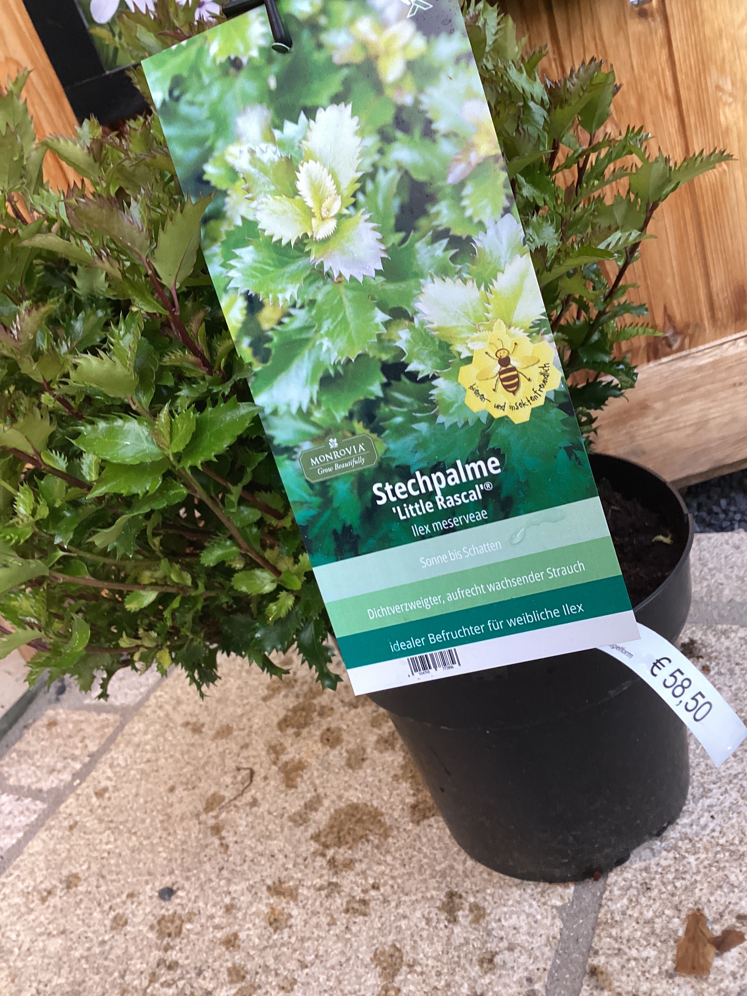 Die Stechpalme ‘Little Rascal’ ist ein kompakter, kugeliger Zwergstrauch mit dichtem, glänzendem, tiefgrünem Laub, das ganzjährig erhalten bleibt. Ihre feinen, leicht gewellten Blätter sind typisch für die Gattung Ilex, wirken aber weniger stachelig als bei größeren Sorten. Mit einer Wuchshöhe von nur 30–50 cm bleibt Little Rascal besonders pflegeleicht, formsicher und bestens einsetzbar in kleinen Gärten, Rabatten, Pflanzkübeln oder als Begleiter in Staudenbeeten.