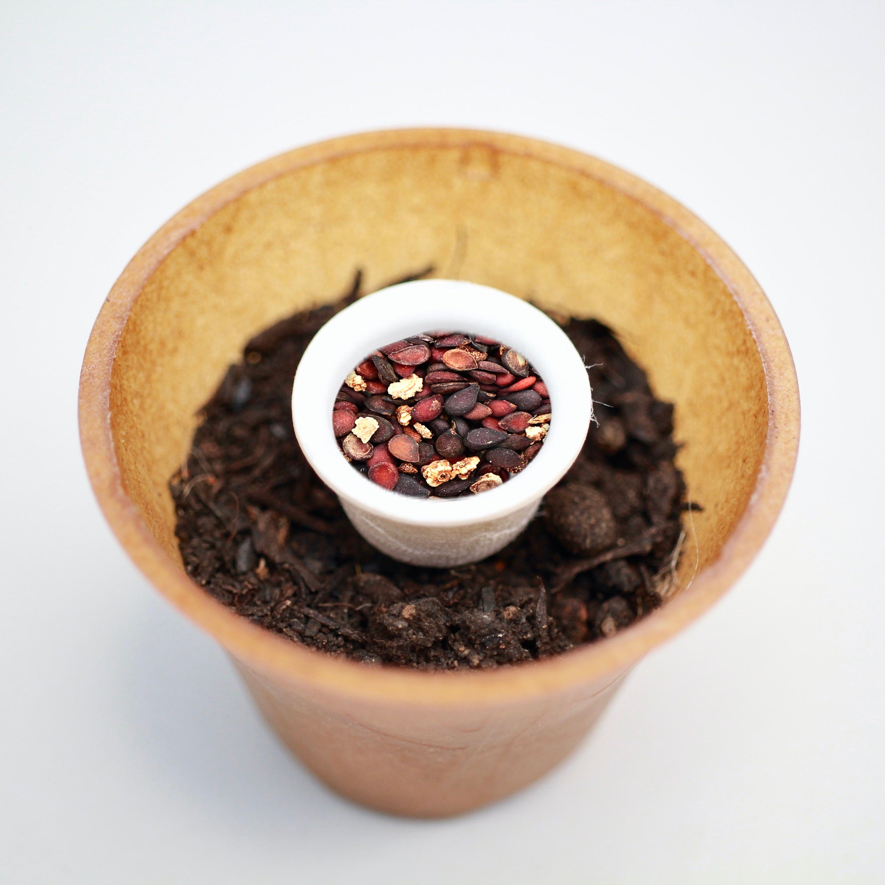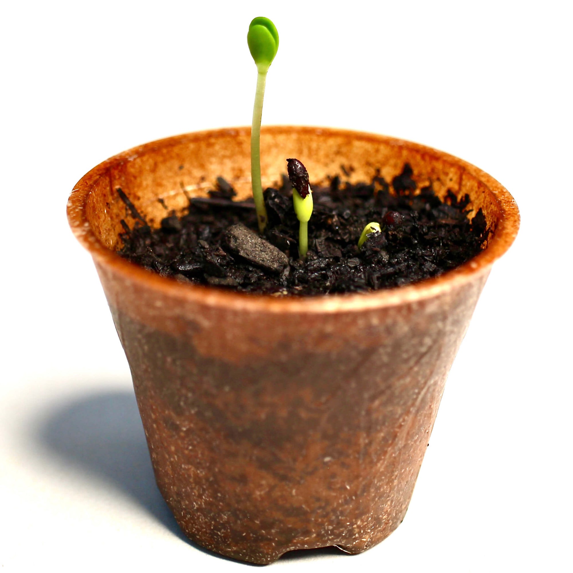 Samen in die Erde drücken, gießen – und wachsen lassen. Nach der Aufzucht kannst du den Sämling direkt mit dem kompostierbaren Topf in den Boden oder ein größeres Gefäß einpflanzen. Der Topf zersetzt sich in 12–24 Monaten rückstandsfrei. Deine Pflanze wurzelt frei und ungestört.